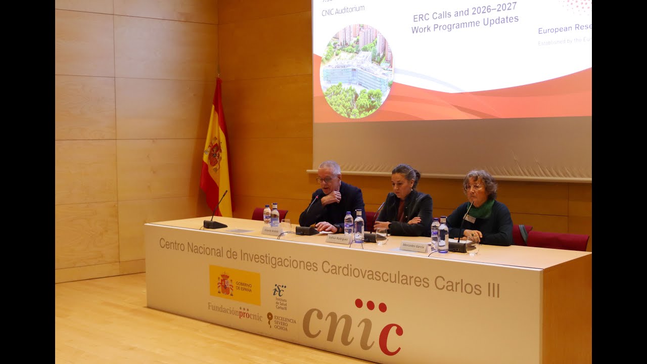 El pasado 12 de noviembre de 2025 se celebró en el Auditorio del Centro Nacional de Investigaciones Cardiovasculares Carlos III (CNIC) la jornada informativa “ERC Infoday at CNIC: novedades y cambios de los WPs 2026 y 2027”, organizada conjuntamente por el CNIC y la Fundación Española para la Ciencia y la Tecnología (FECYT).