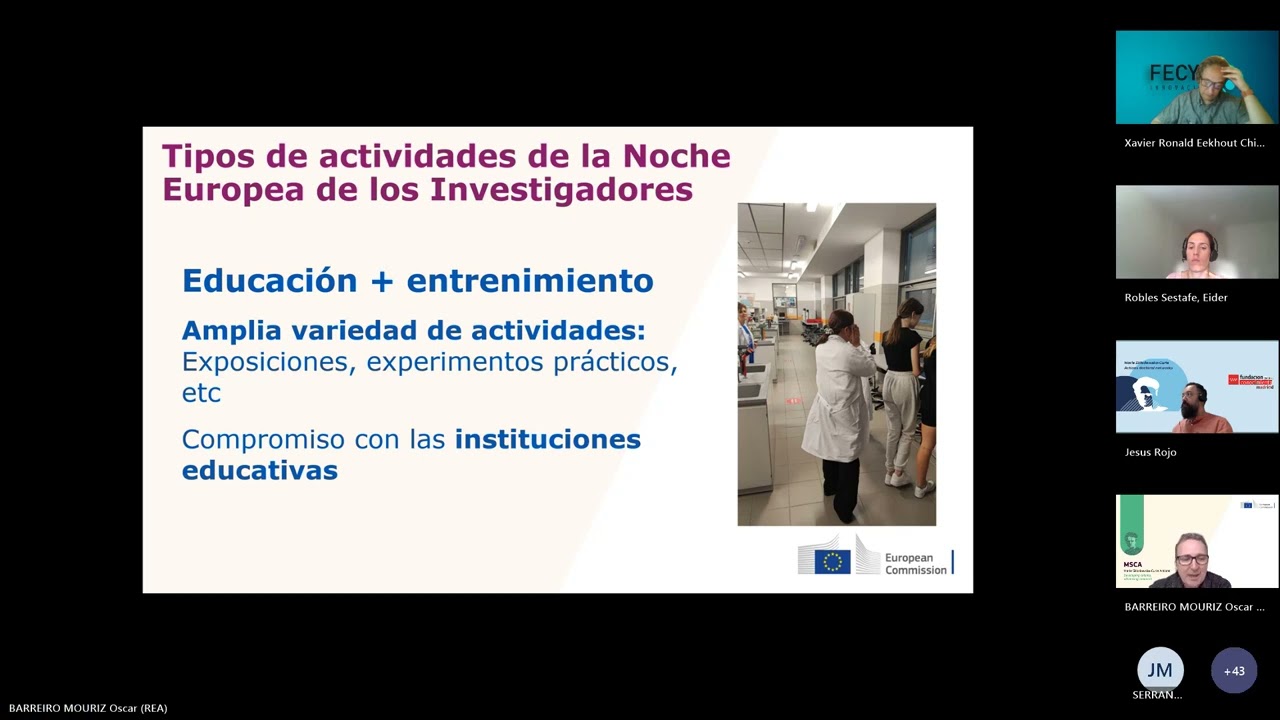 - European Researchers’ Night: evento anual que se celebra el último viernes de septiembre en toda la UE y países asociados. Incluye: